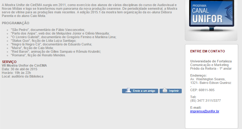 VII Mostra Unifor de CinEMA – Universidade de Fortaleza (2015);